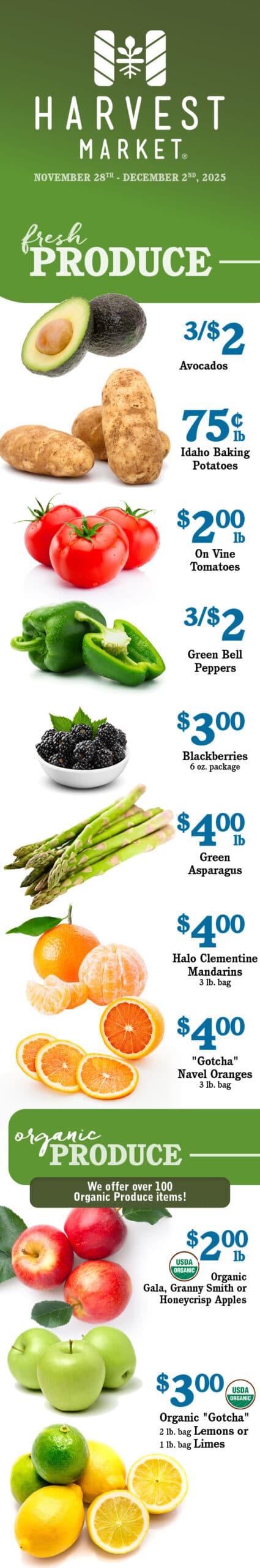 Fresh Savings This Week at Your Harvest Market in Champaign, IL Hours & Location Sign Up For Weekly Specials Emails Price valid November 28, 2025 - December 2, 2025Click the images below to enlarge